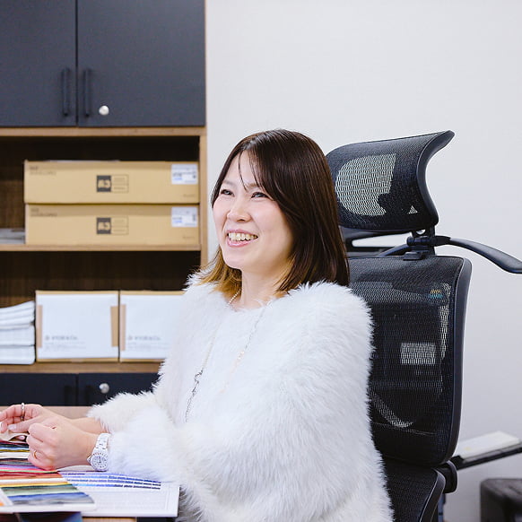 会社初のデザイナーとして入社し、主にファッション雑貨やアパレルのデザインを担当しています。周囲と協力し合いながら、安心して新しいことに挑戦できる環境の中で、日々成長を実感しています。自分が手がけた商品がお客様に喜ばれた時に、この仕事ならではのやりがいを感じます。